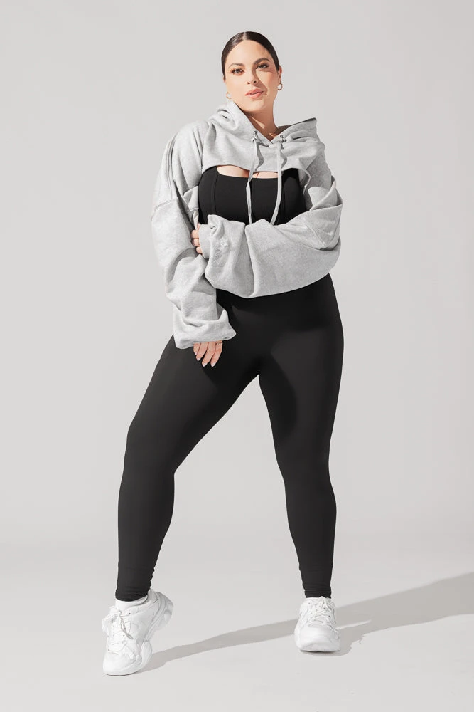 A layering piece that makes a statement — introducing the Step Up Shruggie. This ultra-cropped, drawstring shrug hoodie is complete with romantic pleated sleeves. Perfect for when you‘re kinda cold kinda not 😉