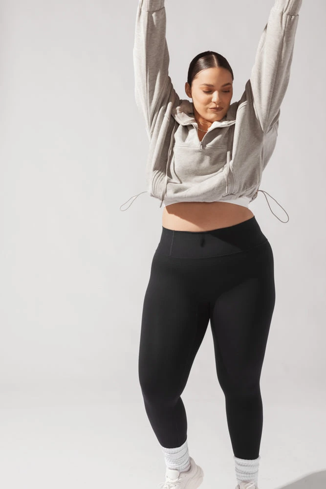 The cozy, oversized half-zip hoodie that’s perfect for pre-workout warmups and post-workout cooldowns. Also, you can totally turn this into a super cropped sweater using the 2 adjustable side bungee cords. Our favorite feature? The large, zippered kangaroo pocket to keep your essentials secured, so no more phones falling out of loose pockets!