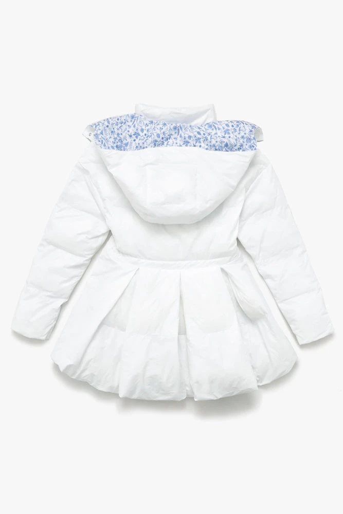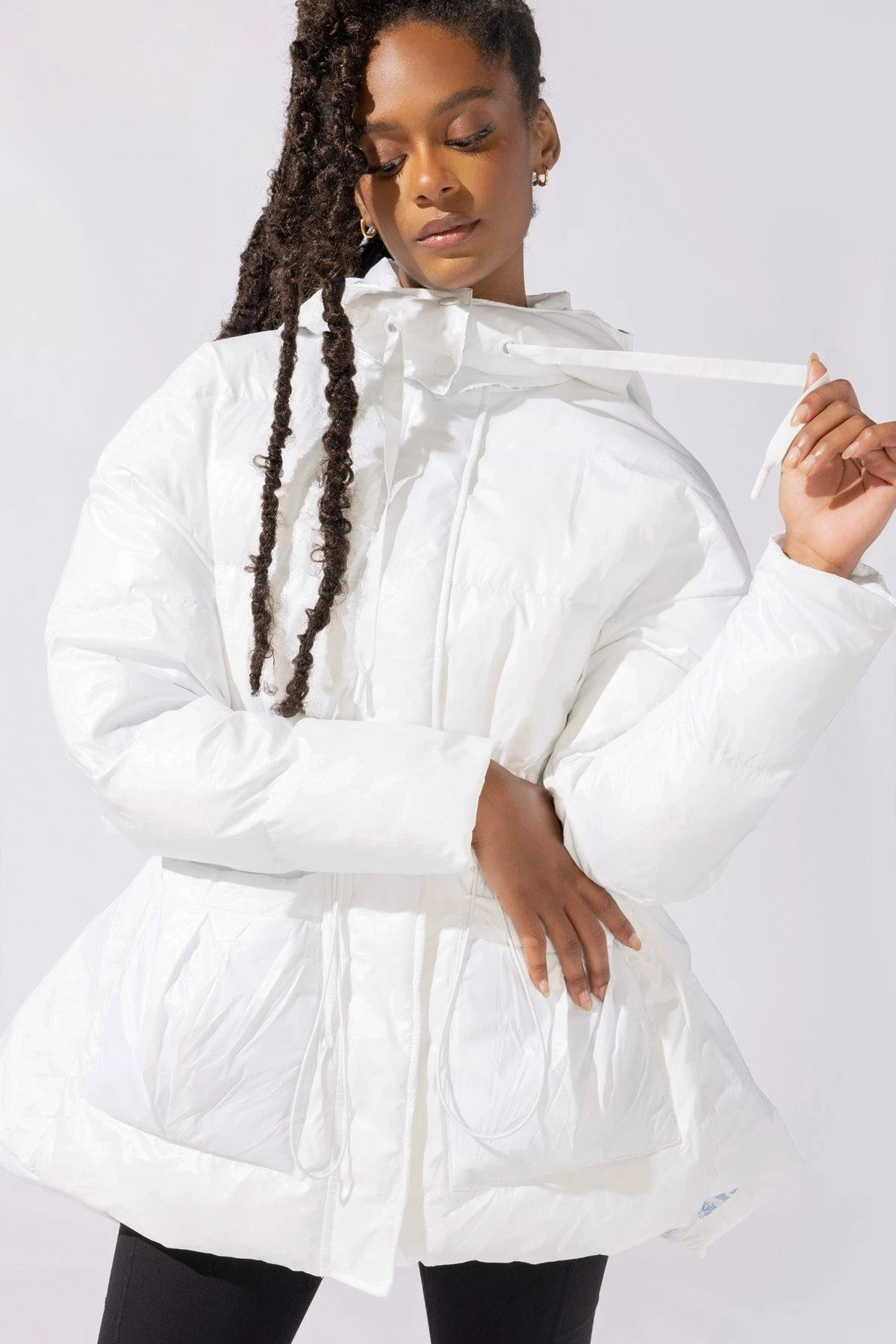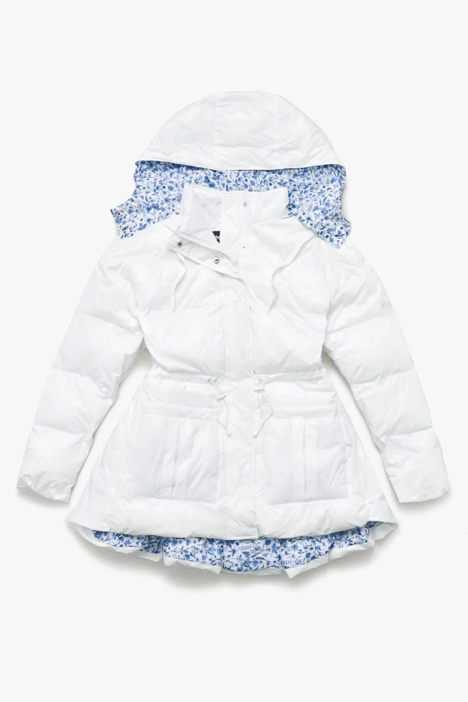 Turn heads this season with the Pearl Puffer. With an enchanted hood, snatched waist, and bustle effect on the booty, this piece brings the drama (and the warmth).